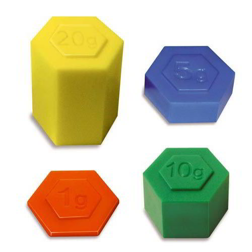 Set pesi per bilancia, realizzati con plastica di altissima qualità. In 4 Colori e 4 Grammature: 1 gr. ( Rosso ) - 5 gr. ( Blu ) - 10 gr. ( Verde ) - 20 gr. ( Giallo). Numero pezzi complessivi: 54. Possibile acquistare bilance nel nostro sito separatamente.