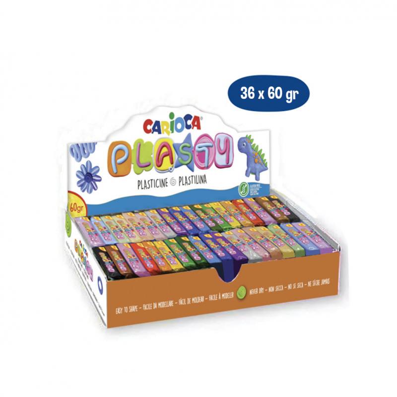 Plastilina facile da modellare. Non essicca all'aria. Non si restringe e può essere utilizzata infinite volte! Dai colori brillanti e miscelabili. Senza Glutine. Confezione 36 panetti da 60 grammi.