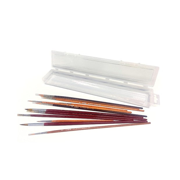 Porta pennelli con incluso 12 pennelli di misure e tipi diversi.
