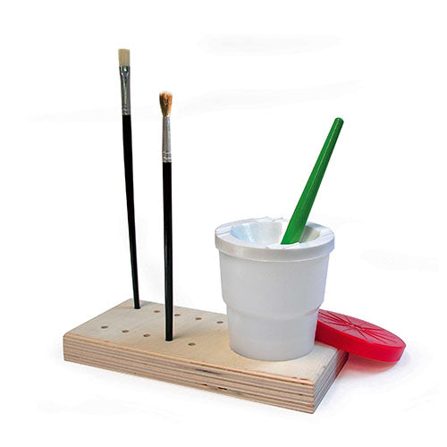 Portapennelli in legno da 10 posti più Barattolo Calamaio con coperchio.