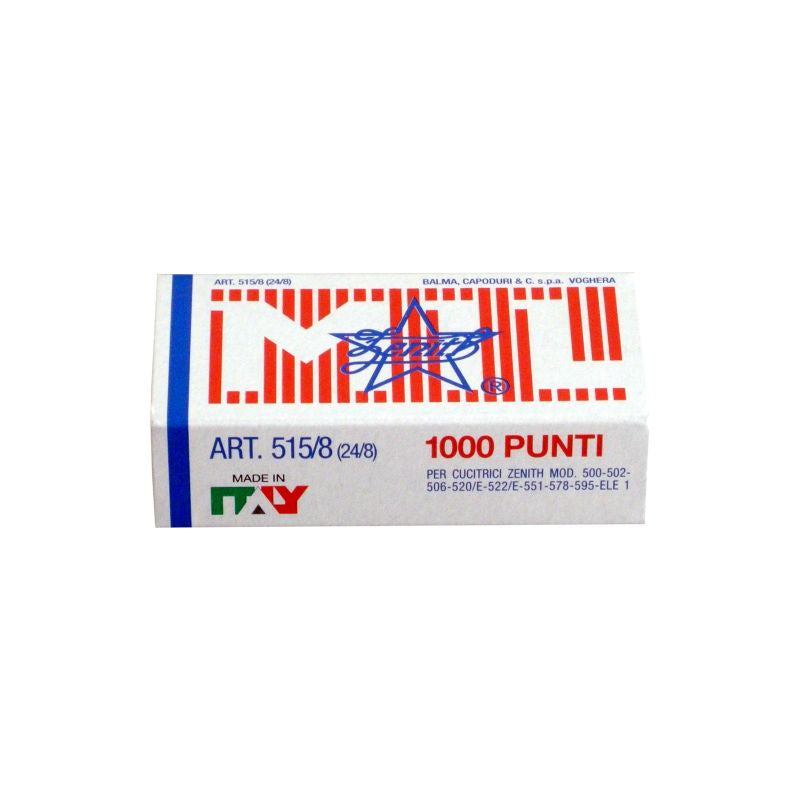 Questi punti metallici sono realizzati in robusto acciaio naturale che non si spezza se piegato e garantisce una lunga durata temporale senza arrugginire e quindi non lascia segni sui documenti. L'articolo è adattabile a quasi tutti i modelli di spillatrici comunemente disponibili in commercio ed è fornito in una comoda scatolina a cassettiera che non occupa spazio e facilita la presa dei punti metallici. Questo è un prodotto indispensabile da avere sempre in casa o in ufficio per ogni esigenza di rilegatura o di pinzatura. Altezza gamba: 6 mm. Passo: 12 mm. Unita vendita: scatola 1000 punti.
