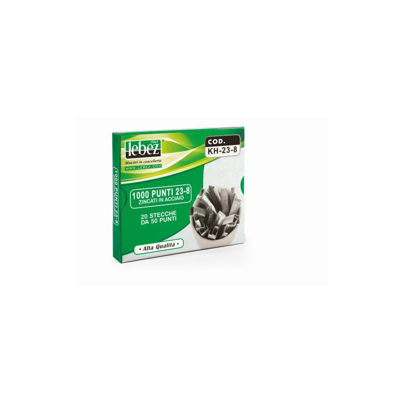 I punti per cucitrice alti spessori 23⁄8 sono progettati per cucire fino a 25 fogli con facilità. Realizzati in acciaio zincato, garantiscono una tenuta solida e duratura.