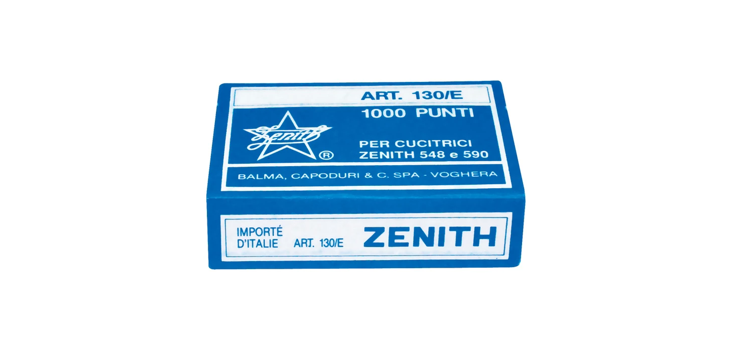 - I punti metallici universali ZENITH 130/E sono realizzati in acciaio di qualità. Sono robusti e resistenti e non si arruginiscono. Indispensabili in ogni sede di lavoro sono utili anche a casa. Perforano perfettamente i fogli, permettendo di raggruppare e raccogliere fogli di carta e appunti ed evitano fortuiti smarrimenti.