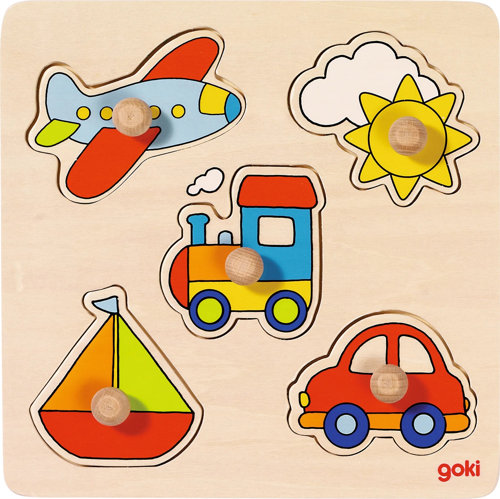 Un puzzle a incastro molto carino e semplice. Perfetto per avvicinare i bambini al mondo dei puzzle grazie ai bottoni in legno di grandi dimensioni. La splendida immagine di sfondo dai colori vivaci invoglia i bambini a completare il puzzle. I pezzi presentano disegni semplici.