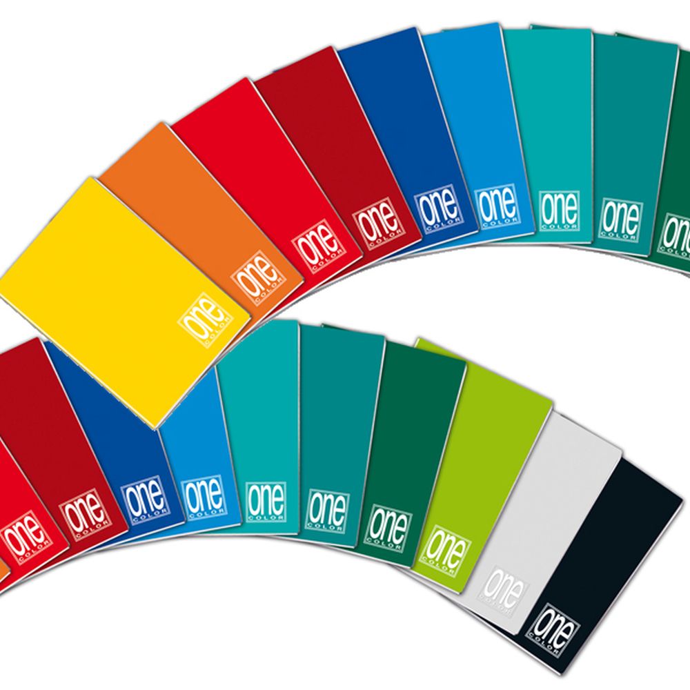 Maxiquaderni e quaderni One Color a punto metallico. 40 fogli più risguardo in carta da 80 g/mq con copertina da 240 g/mq. Colori assortiti che saranno inviati a seconda della disponibilità in magazzino. Formato: A5. Rigatura: 5 mm con margine. Nr. Fogli: 40. Grammatura: 80 g/m². Soggetto: monocromatico.