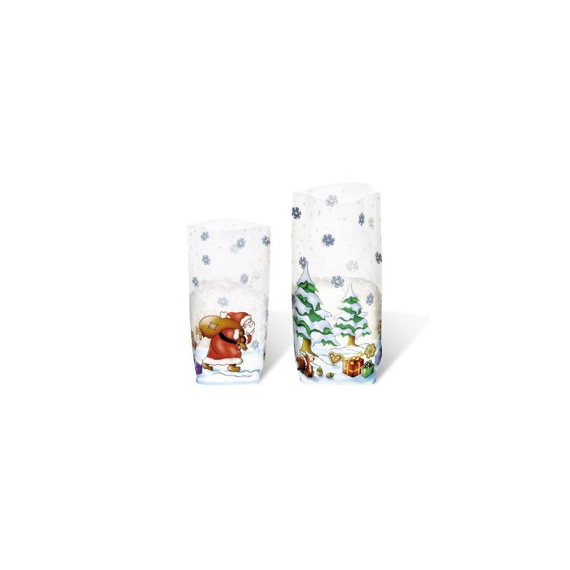 Confezione 10 sacchetti regalo con fondo in pellicola trasparente per alimenti nel formato 14,5 x 23,5 cm. Stampato con un motivo natalizio.