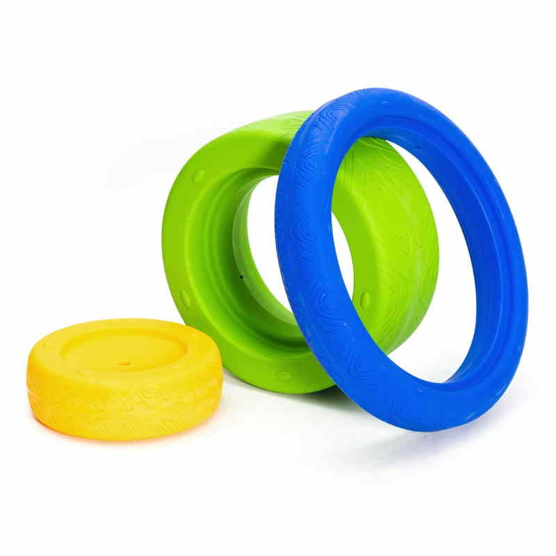 Questo set vi permetterà di creare dei percorsi, con molteplici possibilità di costruzione. Realizzato con materiale plastico semi rigido,solido e stabile 100% RICICLABILE. TUTTE LE RUOTE SI INCASTRANO L’UNA NELL’ALTRA, OCCUPANDO IL MINIMO INGOMBRO. Set composto da 1 ruota da 40 cm,1 ruota da 60 cm e 1 ruota da 76 cm. Età consigliata è di 2 anni. MADE IN ITALY