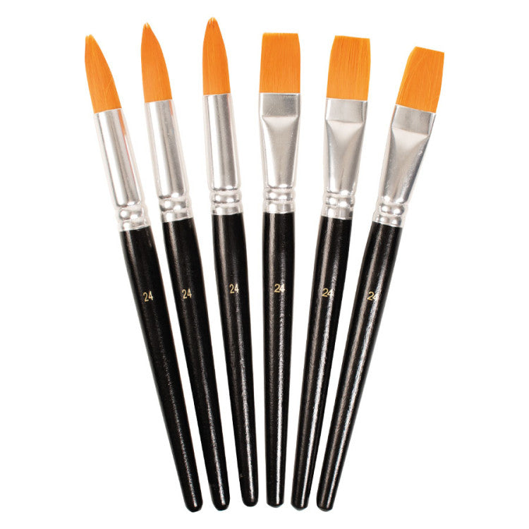 Set di pennelli sintetici tondi e piatti con manici laccati. Dai libero sfogo alla tua creatività con l'aiuto dei pennelli sintetici. Questo set include pennelli tondi e piatti con il n. 24. Crea linee sottili e spesse, opere d'arte spettacolari e dettagli raffinati.