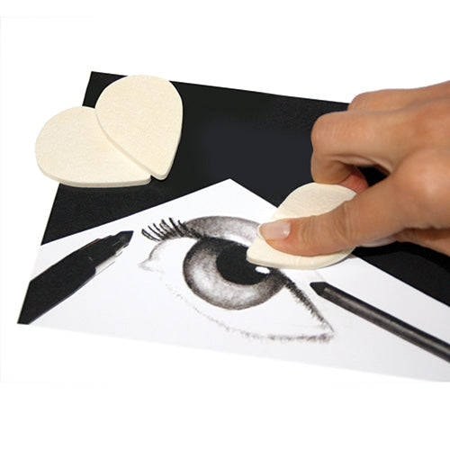 Sfumini adatti per tutti gli articoli da disegno sfumabili come carboncini, matite, gessi e pastelli. Gli sfumini sono strumenti utilizzati nell'arte per creare sfumature e sfumature di colore su un disegno o una pittura. Sono realizzati con un materiale morbido, come carta o feltro, che consente di distribuire e mescolare il colore in modo uniforme. Un vantaggio degli sfumini è che consentono un controllo preciso sulla quantità di colore da applicare e sulla pressione da esercitare. Fare la punta con carta vetrata.