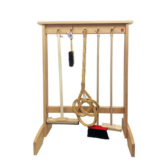 Supporto autoportante in legno per gli attrezzi per la pulizia (attrezzi non inclusi). Dimensioni: 67 x 30 x 91,5h cm