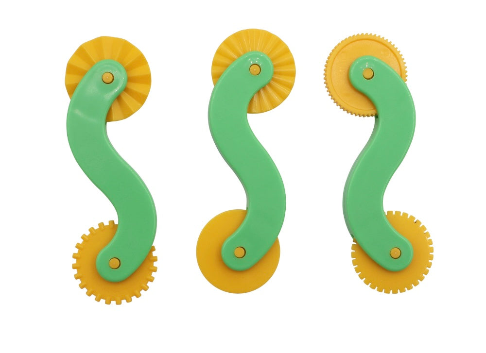Questo set di 3 rotelle per pasta a doppia estremità è perfetto per i bambini piccoli che vogliono esplorare la loro creatività con la pasta da modellare. Progettato con manici robusti e facili da impugnare, ogni rotella presenta due distinti motivi a rotella: dritto e ondulato, a zigzag e a punti, a coste e a punti. Ideali per tagliare o marcare la pasta, queste rotelle aiutano a migliorare le capacità motorie fini rendendo il lavoro creativo divertente. Gli strumenti sono sicuri, resistenti e facili da pulire, offrendo ore di divertimento pratico. Dimensioni: 13 cm di lunghezza; 4 cm di diametro.