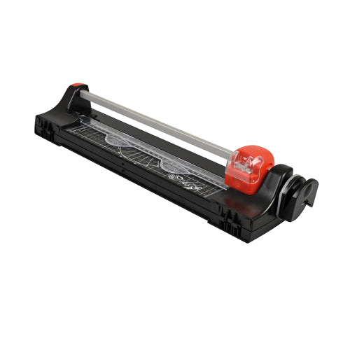 Taglierina multifunzione a rotella. Struttura e piano in metallo prestampato con formati DIN.