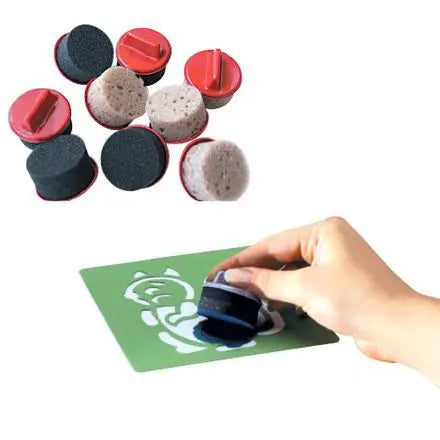 Confezione di 10 tamponi per stencil da 40 mm con un’impugnatura in plastica ergonomica che facilita l’utilizzo. Sono composti da 5 Tamponi in Grana Grossa e 5 In Grana Fine.