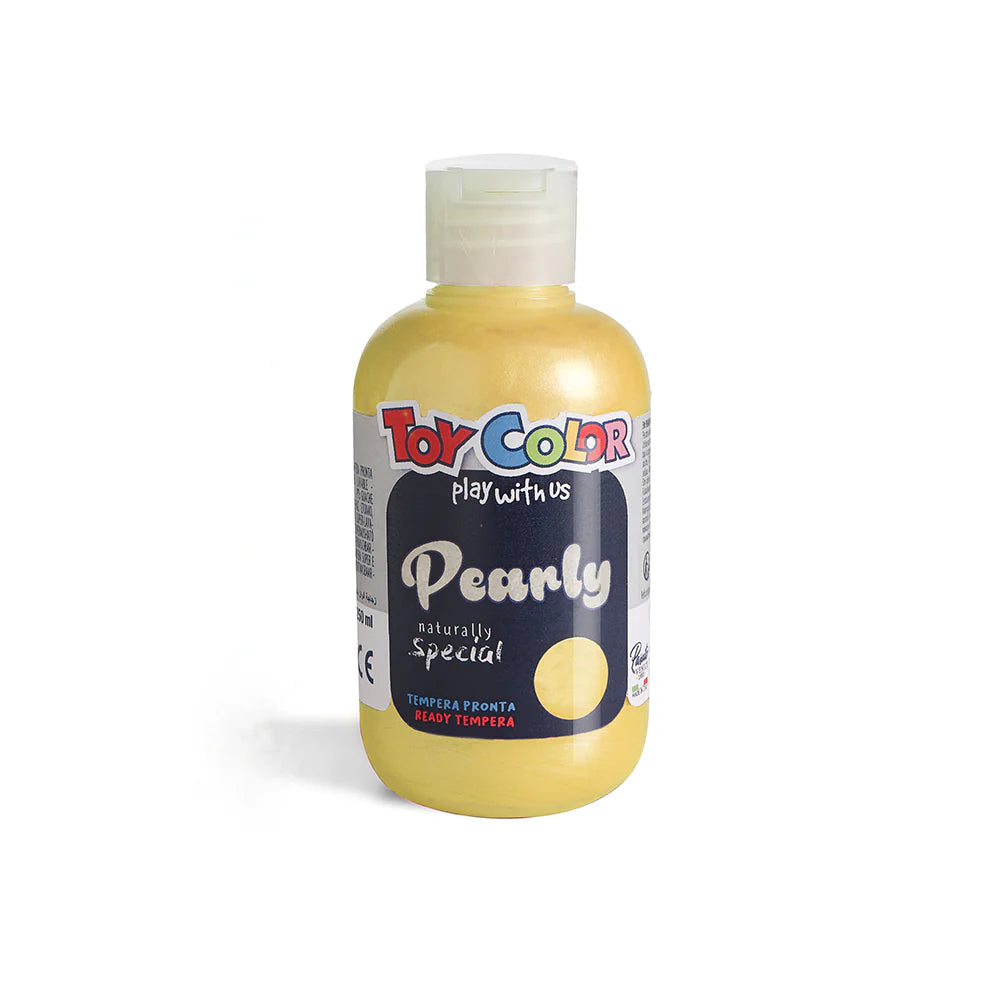 Colori a tempera perlati in flaconi da 250 ml, made in Italy e superlavabili dalle mani e dalla maggior parte dei tessuti.