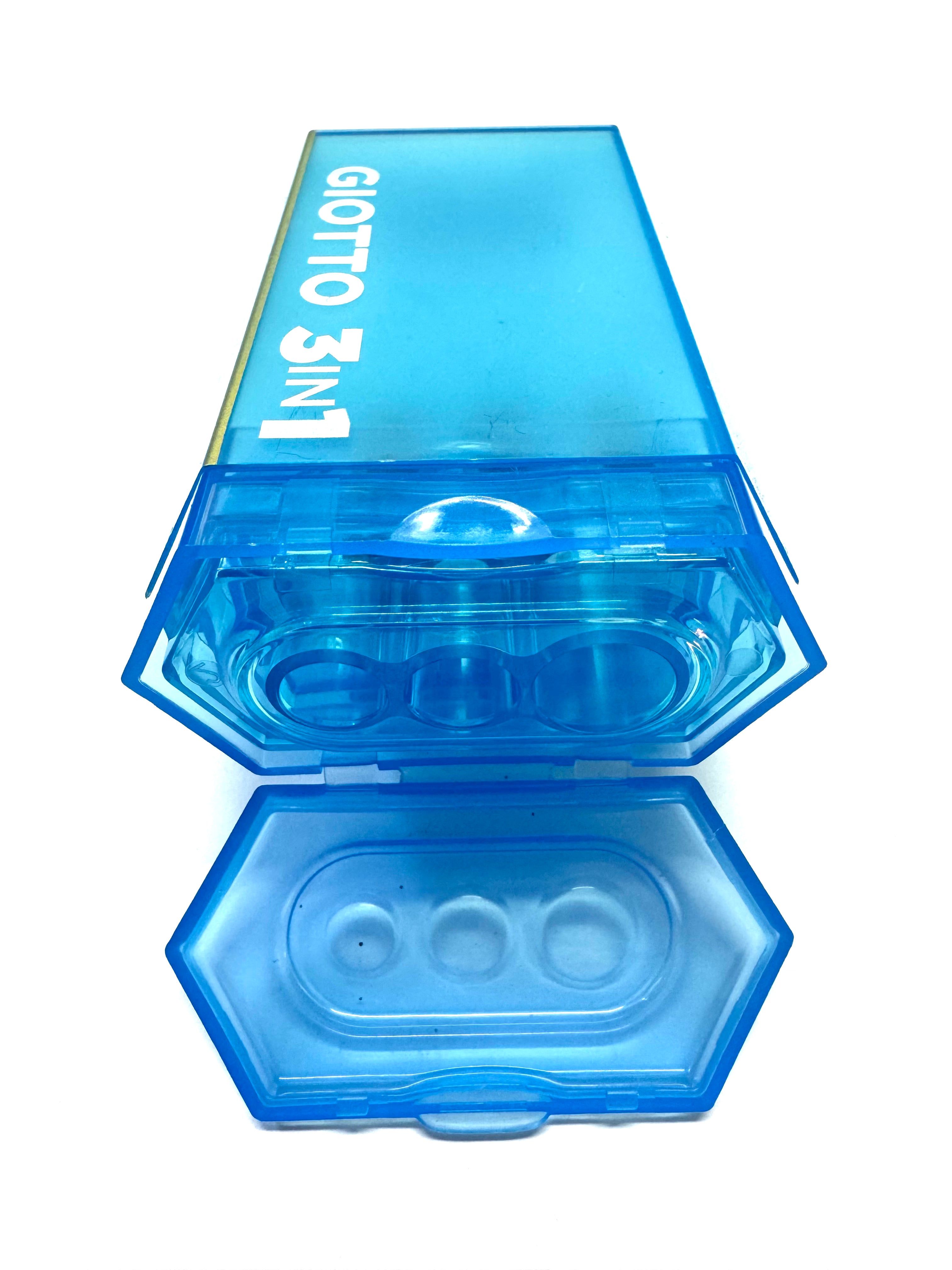 Temperamatite 3in1 cioè tre fori, piccolo, medio e grande per poter temperare ogni tipo di pastello. Serbatoio molto capiente e comoda clip sul retro che permette l' aggancio ed evita di perderlo. Spazio per scrivere il nome.