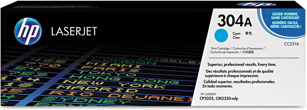 Toner originale 304A HP, di colore cyano e dalla durata di 2800 pagine.