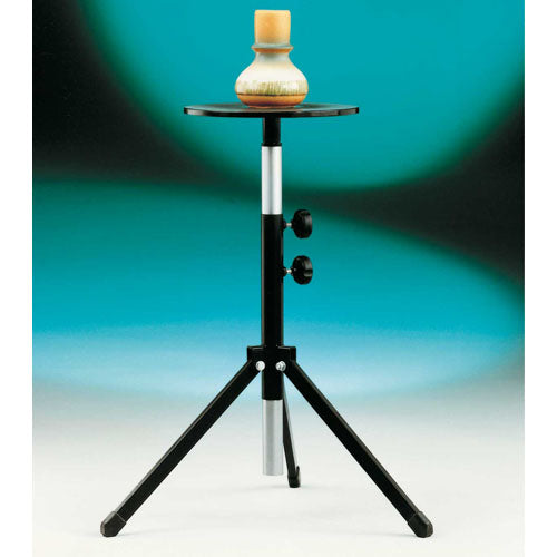 Tornio da studio per modellare, in acciaio cromato e verniciato nero con piatto tornito in acciaio girevole su sfera e gambe richiudibili e regolabile in altezza.