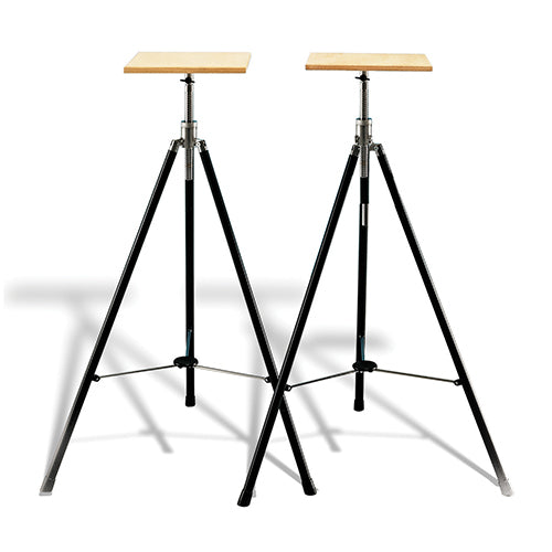Trespolo in acciaio cromato e verniciato nero con piano girevole in legno.